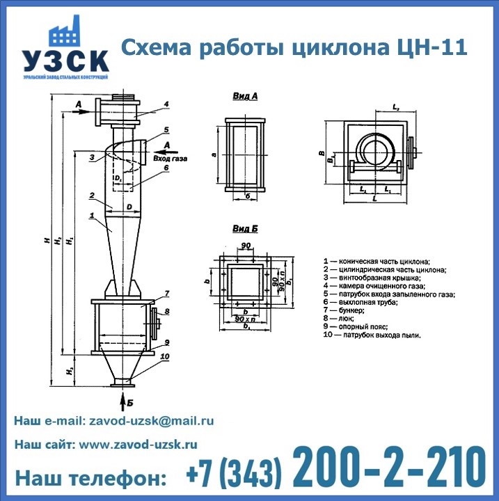 При этом ощутимой разницы в цене между универсальным и узконаправленным, подобранным в соответствии с конкретными техническими требованиями циклоном, нет. Стоимость воздухоочистительного оборудования типа циклон обусловлена маркой и толщиной стали, из которого он изготовлен, сложностью и специфичностью конструкции, наличием дополнительного оснащения (бункер, улитка и другие). При необходимости, на заводе УЗСК в Нефтекамске будет изготовлен циклон по индивидуальным техническим чертежам заказчика.