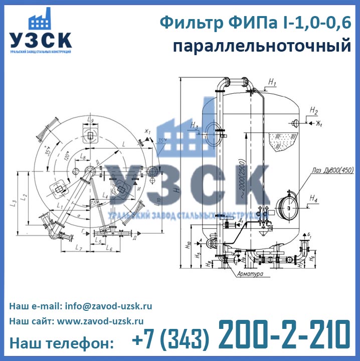 Для того, чтобы купить фильтр ФИПа1 1,0-0,6 в Нефтекамске выгодно, необходимо обратиться непосредственно к производителю данного оборудования. Ведущий производитель фильтров для смягчения воды – Уральский Завод Стальных Конструкций – предлагает фильтры натрий-катионитные параллельноточные по низким ценам. Оформить заказ на изготовление фильтра ФИПаI 1,0-0,6 Вы можете по электронной почте, указанной в разделе «Контакты» или при помощи формы заказа, расположенной ниже.