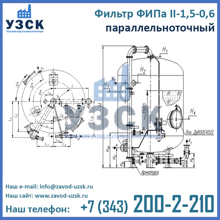 Цены фильтра ФИПа 2 ступени 1,5-0,6 формируются в соответствии со множеством факторов, таких как материальное исполнение, тип распределительных устройств, требуемая комплектация, необходимости доставки и т.д. Для расчета цены фильтров ФИПаII-1,5-0,6 в Нефтекамске обратитесь в отдел продаж Уральского Завода Стальных Конструкций по координатам, указанным в разделе «Контакты».