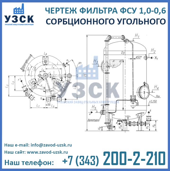 Наш завод (Уральский завод стальных конструкций) является производителем угольных фильтров, сам осуществляет изготовление и реализацию выпускаемой продукции. Приобретая фильтры ФСУ-1.0-0.6 в Нефтекамске от производителя, Вы приобретаете оборудование без наценок всевозможных посредников, а также значительно экономите свое время. Фильтры ФСУ1.0-0.6 завода УЗСК – это гарантия качества, кратчайшие сроки изготовления и цена, которая Вам понравится.