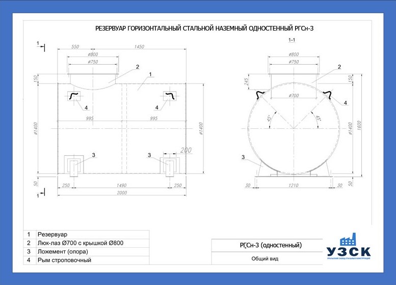 - РГСн-3: горизонтальный резервуар одностенный наземного расположения;
