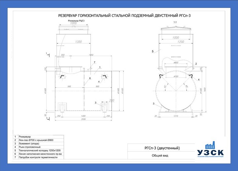 - РГСДп-3: горизонтальный резервуар двустенный подземного расположения.
