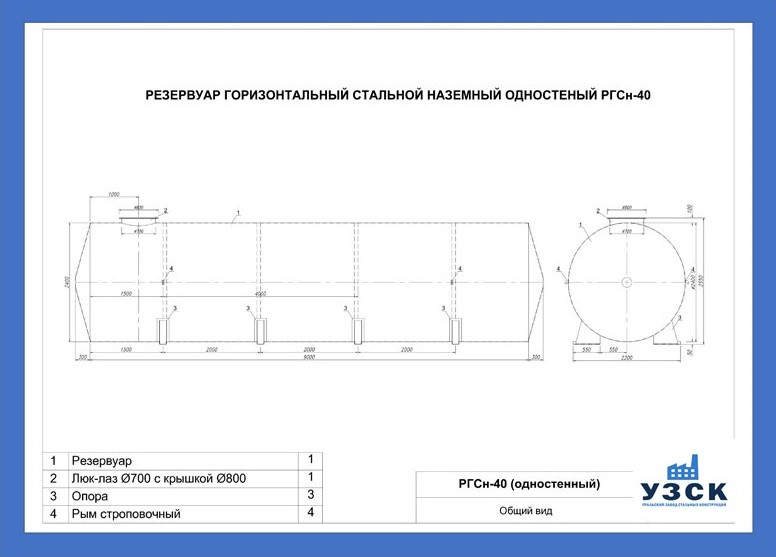 РГСн-40: горизонтальный резервуар одностенный наземного расположения;