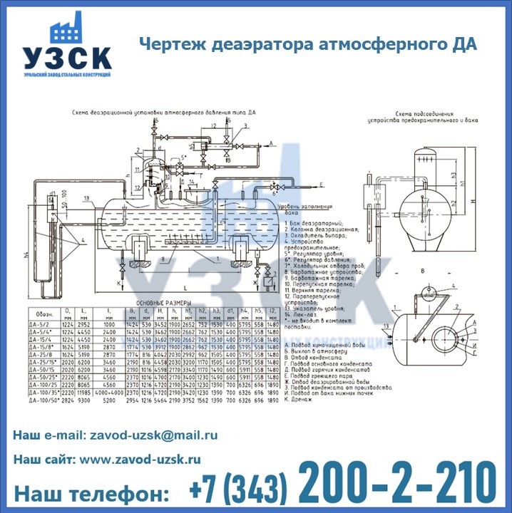 Приобрести качественное оборудование, в том числе, деаэраторы ДА, можно в компании УЗСК в Нефтекамске. Мы предлагаем долговечную и надежную продукцию по приемлемой цене. Заказать и купить деаэраторы или другие изделия высокого качества можно через сайт Уральского Завода Стальных Конструкций, или позвонив по указанному в разделе «Контакты» телефону.